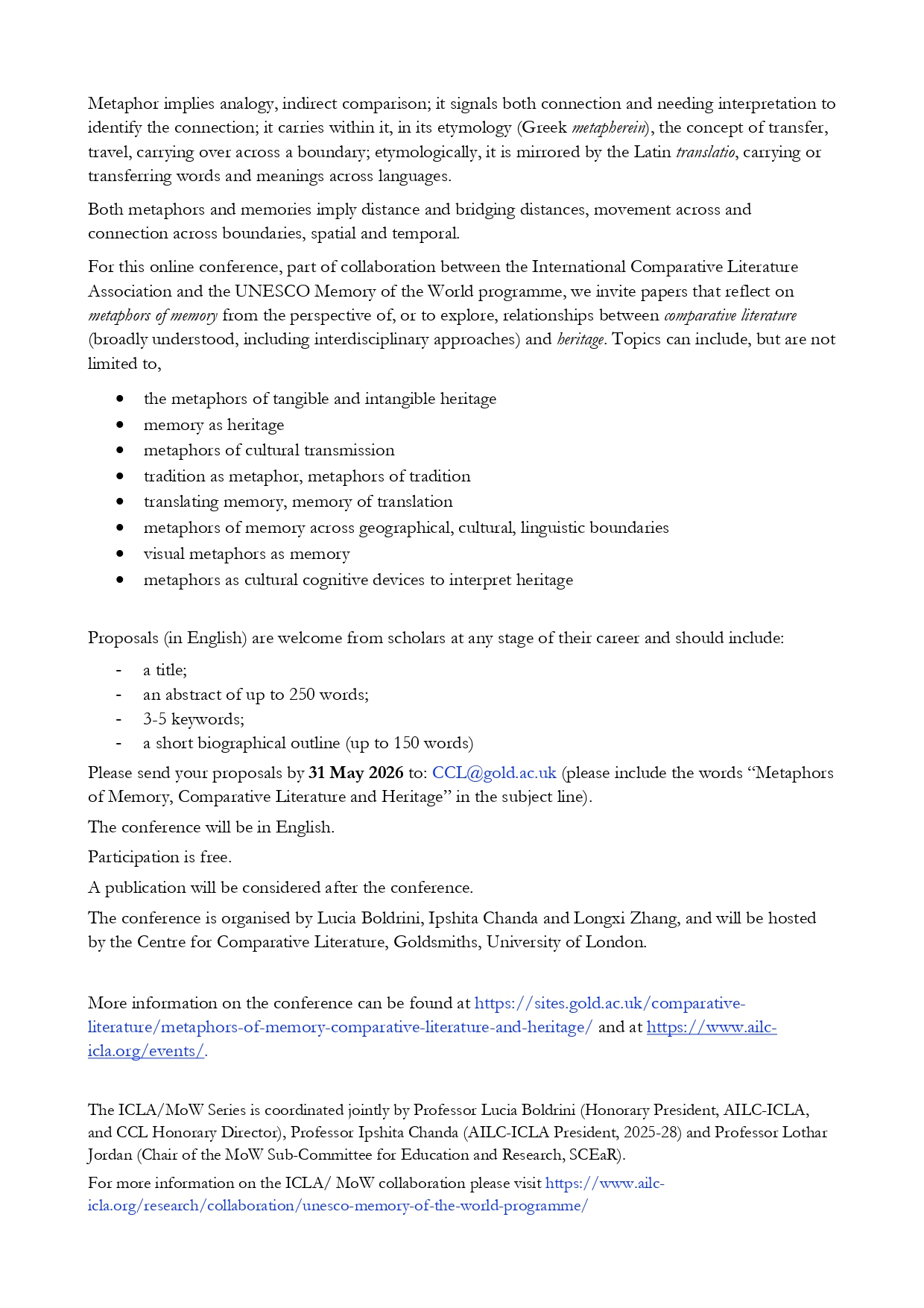 Notification of acceptance will be communicated on 10 February 2021, along with the information about the registration fee, presentation platform, etc.